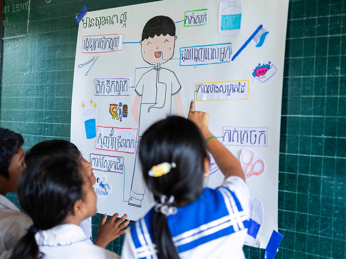 One of our other goals is to improve hygiene levels of the children. We focus on sharing knowledge with the children, telling them about the benefits of practicing good hygiene everyday. This will help prevent the spread of disease, and improve their overall wellbeing. In Cambodia, we mainly do this through educational campaigns, hands-on demonstrations, and role play activities.